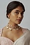 Featuring a gold finish necklace studded with kundan polki and semi-precious stones, set in brass. It is paired with a matching pair of earrings. Perfect wear for festive occasions or wedding ceremonies.