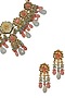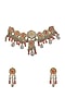 Featuring a gold finish necklace studded with pink imitation kundan polki and semi-precious stones, set in brass. It is paired with a matching pair of earrings. Perfect choice for weddings or other Indian festivities.