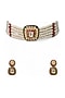 Gold Finish Red Kundan Polki & Semi-Precious Stone Choker Necklace Set