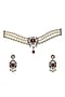 Featuring a gold finish choker necklace studded with red imitation kundan polki and semi-precious stones, set in brass. It is paired with a matching pair of earrings. Perfect choice for weddings or other Indian festivities.