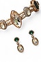 Featuring a gold finish choker necklace studded with swarovski crystals, set in brass. It is paired with a matching pair of earrings. Perfect choice for weddings or other Indian festivities.