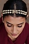 Featuring a gold finish mathapatti studded with white imitation kundan polki, set in brass. Perfect choice for weddings or other Indian festivities.