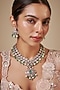 Featuring a two tone finish necklace studded with aqua imitation kundan polki and semi-precious stone, set in brass. It is paired with a matching pair of earrings. Perfect wear for festive occasions or wedding ceremonies.