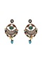 Featuring a pair of two tone finish dangler earrings studded with green imitation kundan polki and semi-precious stones, set in brass. Perfect choice for weddings or other Indian festivities.