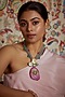 Featuring a two tone finish necklace studded with freshwater pearls and semi precious stones, set in brass.