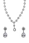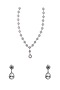 Featuring a white finish necklace studded with CZ stones, set in brass. It is paired with a matching pair of earrings. Perfect choice for weddings or other Indian festivities.