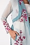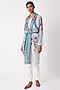Featuring a sky blue sheer trench coat in cotton silk base with floral applique. This contains only one piece.