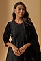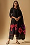 Featuring a black anarkali in chanderi base with floral applique embroidery. It is paired with matching pants and a stole having applique work.