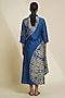 Cobalt Blue & Cream Blended Silk Digital Printed Tunic