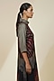 Featuring a dark grey and burgundy tunic in blended silk base with digital print and machine embroidery. Accentuate it with sleek metallic studs and sandals for a chic, contemporary ensemble, ideal for casual brunches, art events or stylish day outings.
