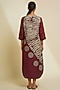 Deep Burgundy Blended Silk Digital Printed & Embroidered Tunic