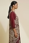 Featuring a deep burgundy tunic in blended silk base with digital print and dragonfly machine embroidery. Accentuate it with sleek metallic studs and sandals for a chic, contemporary ensemble, ideal for casual brunches, art events or stylish day outings.