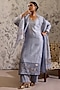 Featuring a blue woven jamdani kurta in pure linen base with sequin work. It is paired with pure kala cotton pants and a pure linen sequins woven jamdani dupatta. Accentuate it with statement earrings and heels for a festive occasion.