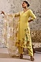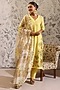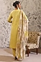 Featuring a yellow kurta in pure malai chanderi base. It is paired with pants and a pure malai chanderi woven striped tissue dupatta. Accentuate it with chandbali earrings, a clutch bag and kolhapuri heels for a festive or a haldi look.