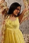 Featuring a yellow anarkali in pure malai chanderi base with zari tissue broder. It is paired with pure muslin cotton churidar pants and a pure malai chanderi woven striped tissue dupatta. Accentuate it with chandbali earrings, a clutch bag and kolhapuri heels for a festive or a haldi look.