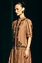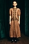 Featuring a brown dress in viscose linen base with lace patchwork and hand embroidery. Accentuate it with dangler earrings and high boots for evening soirees and a boho themed parties.