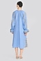 Featuring a cornflower blue tunic in linen base with ruffled cuffs, handcrafted tassels and treadle embroidery. Accentuate it with stud earrings and heels for an evening or casual look.