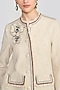 Featuring an ivory jacket in textured cotton base with 3D floral and bead hand embroidery. Accentuate it with pants, stud earrings and heels for an evening or casual look.