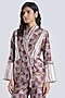 Featuring a multi-colored wrap jacket in silk base with geometric and paisley print, welt pockets and hand beads. Accentuate it with pants, stud earrings and heels for an evening or casual look.