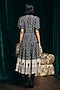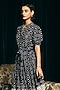 Featuring a navy blue button-down dress in viscose linen base with digital print and puff sleeves. It is paired with a tie- belt. Accentuate it with dangler earrings and high boots for evening soirees and a boho themed parties.