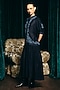 Navy Blue Viscose Linen Hand Embroidered Dress