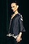 Navy Linen Blend Hand Embroidered Blouse