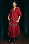 Featuring a red tiered dress in linen blend base with pintucks, applique and hand embroidery. Accentuate it with dangler earrings and high boots for evening soirees and a boho themed parties.