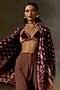 Featuring a wine reversible shrug in pure silk base with handcrafted tassels, hand-bead detail and digital print. Accentuate it with a dress, stud earrings, and boots for evening soirees.