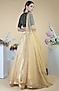 Featuring a gold lehenga in tissue base. It is paired with a matching tulle net dupatta and a contrasting silk chiffon blouse having cut beads and seed beads embroidery.