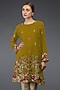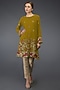Featuring a mustard kurta in viscose georgette base with parsi gara embroidery. It is paired with contrasting beige pants.