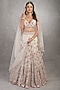 Featuring an off-white lehenga in silk organza base with crystal, bead, and sequins hand embroidery, including a cancan. It is paired with a matching embroidered blouse and a dupatta.