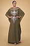 Featuring an olive green kaftan in silk crepe base with silver crystal and beaded embroidery.