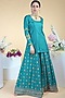 Featuring a teal kurta in silk base with gold zari aari embroidery. It is paired with matching sharara pants having zardosi, dabka and sequin hand embroidery and a tulle embroidered dupatta.