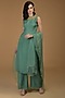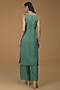 Featuring a turquoise kurta in silk organza base with zardosi embroidery. It is paired with matching pants.