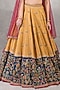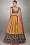 Featuring a yellow and blue lehenga in pure raw silk base with zardosi and resham hand embroidery, including a cancan. It is paired with a matching embroidered blouse and a red organza dupatta.