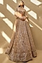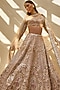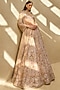 Featuring a baby pink lehenga in raw silk base with zardosi, resham, sequins, gota, mirror, pearls and dori embroidery. It is paired with an embroidered blouse and an embroidered dupatta. Accentuate the designer lehenga with zircon or pearl jewellery, embellished heels and a potli bag for a bridal look, Perfect wear for your wedding or engagement ceremony.