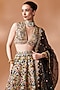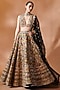 Featuring a black lehenga in chanderi base with mirror, resham and gota embroidery. It is paired with a blouse and a dupatta. Accentuate it with kundan polki or zircon jewellery, embellished heels and a potli bag for a wedding, sangeet or engagement ceremony.