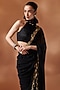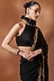 Featuring a black pre-stitched saree in georgette base with cutwork embroidery. It is paired with a blouse. Accentuate it with kundan polki or zircon jewellery, embellished heels and a potli bag for a wedding or sangeet ceremony.