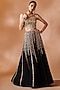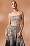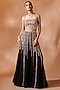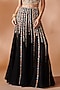 Featuring a black blouse in georgette base with embroidery. It is paired with high-waisted sharara pants. Accentuate it with kundan polki or zircon jewellery, embellished heels and a potli bag for a wedding or sangeet ceremony.