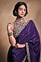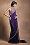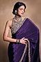 Tamanna Punjabi Kapoor presents a mesmerizing deep purple saree crafted in a crepe base, adorned with intricate hand embroidery featuring stones, resham, mirrors, pearls, dori, nakshi, zari work, and sequins. It is paired with an embroidered blouse and a stretch satin underskirt. Pair it with sculptural chandbalis, metallic heels, and a statement clutch for a refined, celebratory look, perfect for weddings, sangeet or engagement ceremonies.