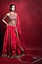 Tamanna Punjabi Kapoor presents a mesmerizing fuchsia pink lehenga crafted in habutai silk and organza base, adorned with stone, mirror, pearl, sequin, dori, nakshi, and zari work. It is paired with an embroidered blouse and a dupatta. Accentuate with statement jewellery and embellished heels for a refined festive look, perfect for weddings or reception ceremonies.