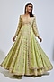 Featuring a green anarkali in georgette base with resham, gota, dori, mirror, and foil embroidery. It is paired with a matching dupatta and a belt.