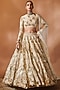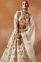 Featuring an ivory lehenga in georgette base with sequins, mirror, resham and gold dori embroidery. It is paired with a blouse and a dupatta. Accentuate it with kundan polki or zircon jewellery, embellished heels and a potli bag for a wedding, sangeet or engagement ceremony.
