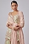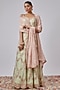 Featuring a light green kurta in chanderi silk base and georgette base with resham, gota, mirror, foil and dori embroidery. It is paired with matching sharara pants and a dupatta.