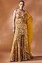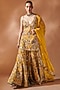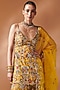 Featuring a mustard kurta in georgette base with mirror, resham and gota embroidery. It is paired with sharara pants and an organza dupatta. Accentuate it with kundan polki or zircon jewellery, embellished heels and a potli bag for a wedding or haldi ceremony.