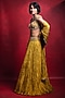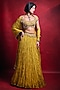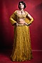 Tamanna Punjabi Kapoor presents a mesmerizing mustard crushed lehenga crafted in habutai silk base, adorned with intricate stone, mirror, pearl, sequin, dori, nakshi, zari and patra work. It is paired with an embroidered blouse and a dupatta. Accentuate with statement jewellery and embellished heels for a refined festive look, perfect for haldi functions, engagement or sangeet ceremonies.