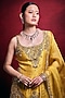 Tamanna Punjabi Kapoor presents a mesmerizing mustard kurta in raw silk and organza base, adorned with intricate stone, resham, mirror, pearl, sequin, dori and zari embroidery. It is paired with an embroidered gharara and dupatta. Pair with sculptural chandbalis, metallic heels, and a statement clutch for a refined, celebratory look, perfect for weddings, sangeet or haldi ceremonies.