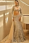 Nude Peach Tulle 3D Floral & Applique Embroidered Lehenga Set
