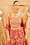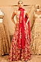 Featuring red sharara pants in georgette base with mirror, resham, sequins and gota embroidery. It is paired with an embroidered blouse and an organza dupatta. Accentuate it with kundan polki or zircon jewellery, embellished heels and a potli bag for a wedding or sangeet ceremony.