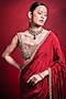 Tamanna Punjabi Kapoor presents a mesmerizing red saree crafted in a raw silk and habutai silk base, adorned with intricate poth, pearl, sequin, dori, and zari embroidery. It is paired with an embroidered blouse and a stretch satin underskirt. Accentuate with polki jewellery and embellished heels for a regal look, perfect for weddings or engagement ceremonies.
